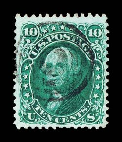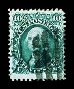 250 O 89 image#89, 10c Green, "E" grill, wonderfully well centered within uncharacteristically large margins, rich luxuriant color and impression, full, well impressed and easily identifiable grill, portions of a town c.d.s. and matching duplex circular cork postmark, extremely fine; an unusually large stamp; 2004 PF certificate. (Image) $325.00