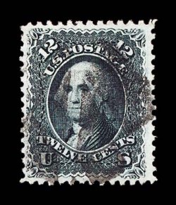 256 O 90 image#90, 12c Black, "E" grill, used, well centered within large margins, deep rich color and a crisp impression on unusually bright paper, neat segmented cork cancel, choice very fine. (Image) $375.00