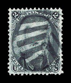 261 O 93 image#93, 2c Black, "F" grill, a most impressive used single, featuring outstanding centering amid very large margins for this difficult stamp, strong color and a well incised impression on fresh paper, light cork cancel, an extremely fine used gem; 1999 PF certificate for a pair, this being the left stamp. (Image) $55.00
