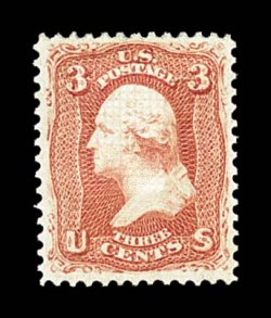 263 og 94 image#94, 3c Red, "F" grill, a pristine mint example of this surprisingly difficult stamp, marvelously fresh and crisp, with deep rich color and a razor-sharp impression, wonderfully well centered as well, large margins, full clean o.g., lightly hinged, extremely fine; 1979 and 1999 PF certificates. (Image) $450.00