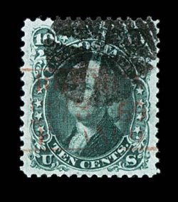276 O 100 image#100, 30c Orange, "F" grill, a superlative used example of one of the most difficult of all United States stamps to find in any kind of premium quality, this copy, however, is flawlessly centered within extraordinarily large margins which are most uncharacteristic of this value, rich fresh color and a crisp impression, light cork cancel, an extremely fine gem in every regard; certainly one of the finest used examples extant; the Scott catalog notes: "Values for No. 100 are for copies with small margins, especially at sides. Large-margined examples sell for much more."; 2004 PSE certificate. (Image) $850.00