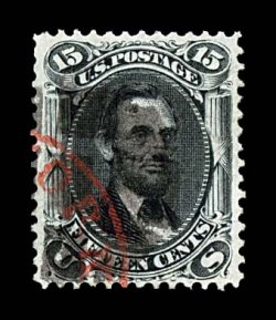 271 O 98 image#98, 15c Black, "F" grill, a select quality used example, possessing centering that is far better than typically encountered on this always difficult value, plus its margins are uncharacteristically wide as well, intensely rich color and a sharp impression on bright paper, light cut cork cancel, plus a vivid red c.d.s. at bottom left, extremely fine and choice; an especially scarce stamp in this premium condition; 1987 PF certificate. (Image) $450.00