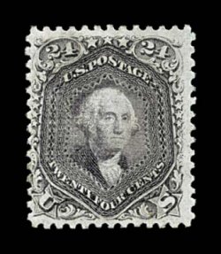 274 og 99 image#99, 24c Gray lilac, "F" grill, a highly desirable mint example of this notoriously difficult value, possessing an impressive overall brilliance rarely seen, with gloriously rich color and a prooflike impression on bright paper, while centered a bit to left this is actually far better centered than the great majority of known mint examples, in fact its perforations are essentially clear of the design all around which is a very rare occurrence, full o.g., lightly hinged, very fine and extraordinarily choice; of all the 1867 grilled issues, the Twenty Four Cent "F" Grill ranks as one of the most challenging to locate in premium original gum condition; 1991 PF certificate; ex-Lessin. (Image) $6,250.00