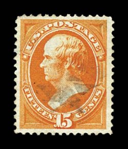 388 O 152 image#152, 15c Bright orange, highly select used example, extraordinarily well centered within especially large margins which are most uncharacteristic, strikingly intense color and impression, superb strike of a blue quartered cork cancel, extremely fine gem; a surprisingly challenging stamp to find used in such premium condition; 1993 PF certificate. (Image) $202.50