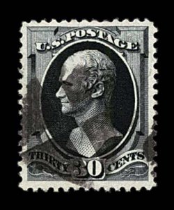 395 O 154 image#154, 30c Black, select quality used example, exceptionally well centered within uncharacteristically large margins, and possessing the most intense rich color and impression that we can remember, on fresh paper, central black Maltese Cross cancel, extremely fine; a surprisingly difficult used stamp to find with such eye appeal; 1990 PF certificate. (Image) $250.00