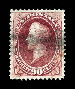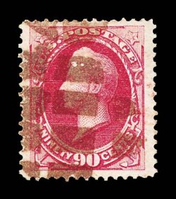 397 O 155 var. image#155 var., 90c Dark carmine, highly select used example that is flawlessly centered within uncharacteristically large margins, deep rich color in this uncommon shade that almost approaches lake, light cancel, extremely fine; quite challenging to find used and this choice; 1999 PF certificate as generic carmine shade. (Image) $350.00