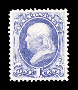 398 og 156 image#156, 1c Ultramarine, lavishly large and wonderfully well balanced margins all around, bright fresh color, full o.g., relatively lightly hinged, couple of trivial natural paper inclusions, extremely fine; 1990 PF certificate. (Image) $300.00