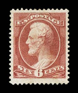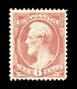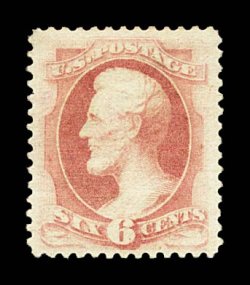 423 og 186 image#186, 6c Pink, wonderfully fresh and bright, possessing excellent strong color, especially well centered within much larger margins than usual, full o.g., quite lightly hinged, extremely fine; an extraordinarily scarce stamp in such premium condition, as the 1879 Six Cent American Bank Note is notoriously difficult to find both sound and with original gum, let alone in this select quality; 1993 and 2004 PF certificates. (Image) $1,100.00