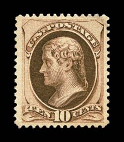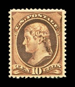 440 nh 209 image#209, 10c Brown, "post office" fresh mint single, gorgeous rich color and a razor-sharp impression on bright paper, well centered within large margins, unblemished o.g., never hinged, very fine and quite choice; 2004 PF certificate. (Image) $475.00