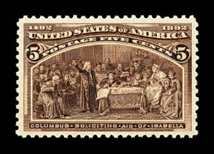 501 nh 234 image#234, 5c Columbian, choice mint example, precisely centered within large margins, deep rich color and a well incised impression, o.g., n.h., extremely fine and handsome. (Image) $220.00