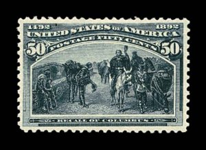 520 nh 240 image#240, 50c Columbian, an exceptional "post office" fresh mint example, featuring rich luxuriant color and a highly detailed impression on fresh white paper, outstanding centering as well, unblemished o.g., never hinged, an extremely fine gem; 1989 PF and 2004 PSE certificates. (Image) $1,700.00