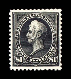 562 og 261A image#261A, $1.00 Black, Ty. II, well centered within uncommonly large margins, intense deep color and a razor-sharp impression on fresh white paper, o.g., lightly hinged, very fine and unusually choice; a particularly difficult stamp to acquire in premium quality; photocopy of a 2000 PF certificate for a block of four and 2003 PF certificate as a single. (Image) $2,300.00
