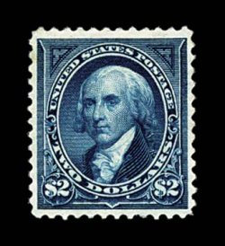 565 og 262 image#262, $2.00 Bright blue, a most impressive mint example of this scarce stamp, being exceedingly well centered within exceptionally large margins, lovely fresh bright blue color and a crisp detailed impression, full o.g., lightly hinged, extremely fine; an especially difficult stamp to find this well centered and margined; 2003 PSE and 2004 PF certificates. (Image) $3,250.00