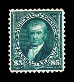 568 og 263 image#263, $5.00 Dark green, a handsome mint example of this rare and difficult high value, being particularly well centered and with deep luxuriant color, strong impression, full o.g., very fine and choice; a rare mint stamp in any condition, as only 25,000 were issued, but only a minute number still exist in sound original gum condition; 1982 PF certificate. (Image) $5,000.00