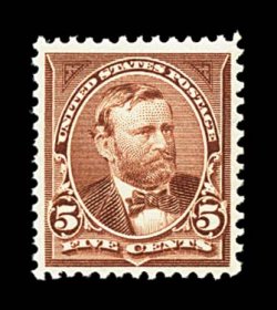 573 nh 270 image#270, 5c Chocolate, pristine mint single, remarkably well centered within uncommonly large margins, fresh with vibrant color, full crisp perforations, clean o.g., never hinged, extremely fine; 2004 PF certificate. (Image) $97.50