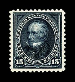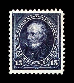 579 nh 274 image#274, 15c Dark blue, pristine mint single, featuring deep luxuriant color and a vivid impression on clean white paper, exceptionally well centered, unblemished o.g., never hinged, extremely fine; a highly desirable and elusive stamp in this gem never hinged condition; 1995 and 2004 PF certificates. (Image) $625.00