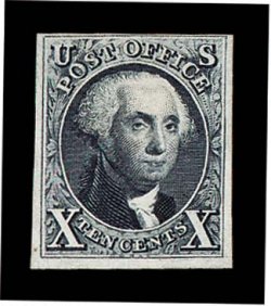 41 og 4 image#4, 10c Black reproduction, without gum as issued, three large margins, close but clear at top, prooflike color and impression on crisp paper, fine and attractive. (Image) $900.00