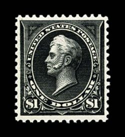 587 og 276A image#276A, $1.00 Black, Ty. II, nearly perfectly centered within large margins, deep rich color and impression, o.g., barest trace of hinging, an extremely fine example of this scarce Bureau issue; 1992 PSE certificate. (Image) $1,500.00