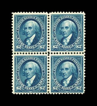 590 ogbl 277 image#277, $2.00 Bright blue, lovely mint block of four, possessing remarkable centering for a block, beautiful bright color and detailed impression on fresh white paper, full o.g., relatively lightly hinged, very fine-extremely fine; an exceptionally rare block few of which yet remain intact. (Image) $4,750.00
