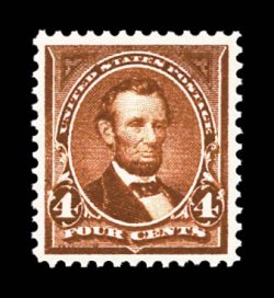 595 nh 280b image#280b, 4c Orange brown, marvelously well centered within unusually large margins, sumptuously rich color and impression on immaculate paper, o.g., n.h., extremely fine; a pristine gem. (Image) $75.00