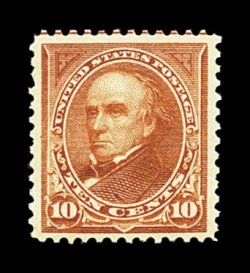 597 nh 282C image#282C, 10c Brown, Ty. I, an absolutely spectacular quality mint example of this always difficult and truly scarce stamp, possessing numerous exceptional physical qualities, including having an incredible overall brilliance and freshness, with stunningly rich color and a prooflike impression on immaculate paper, plus its centering is outstanding amid margins that are uncharacteristically wide, pristine o.g., n.h., extremely fine; among the finest mint #282C's we have ever offered; 1998 PF certificate (top sheet selvage subsequently removed). (Image) $500.00
