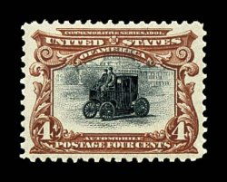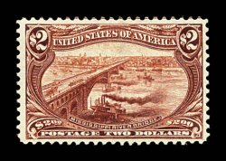 621 og 293 image#293, $2.00 Trans-Mississippi, exceedingly choice mint example of this notoriously difficult commemorative, possessing outstanding centering amid margins that are uncharacteristically large, exceptionally bright rich color with a strong detailed impression, full o.g., lightly hinged, extremely fine; 1994 PF certificate. (Image) $2,100.00