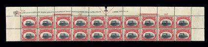 627 nhPB 295 image#295, 2c Pan-American, top margin arrow, double imprint and plate no. 1167 block of twenty, with full selvage on both sides being the entire two top rows of the sheet, well centered, unusually fresh, deep rich colors, o.g., n.h., very fine; the double plate blocks of twenty are seldom encountered. (Image) $1,170.00