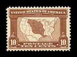 705 nh 327 image#327, 10c Louisiana Purchase, select mint single that is extraordinarily well centered, plus it possesses an exceptional overall freshness and crispness, deep luxuriant color, immaculate o.g., n.h., extremely fine and quite handsome; 1999 PF certificate; ex-Lyons. (Image) $375.00