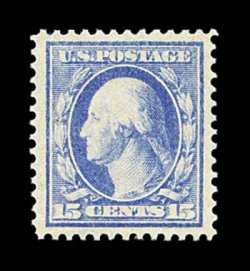 711 nh 340 image#340, 15c Pale ultramarine, a remarkable mint example that is in the finest attainable quality, featuring absolutely flawless centering amid the most lavish margins we have ever seen on this value, additionally this stamp boasts an extraordinary overall mint "bloom", with much stronger color and impression than usual on immaculate paper, even its perforations are uncommonly intact, pristine o.g., n.h., superb; a gem for the most fastidious collector; 1997 PF certificate. (Image) 150.00