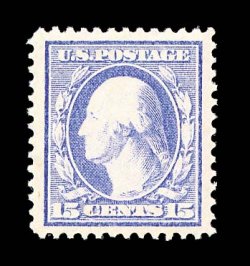 712 nh 340 image#340, 15c Pale ultramarine, an impressively large-margined mint single, with excellent centering within enormous margins which are most uncharacteristic of this stamp, bright fresh color, pristine o.g., n.h., extremely fine; a true jumbo; 2000 PF certificate. (Image) $150.00