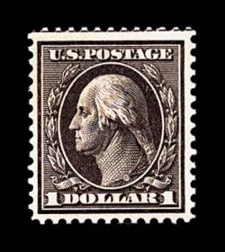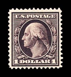 716 og 342 image#342, $1.00 Violet brown, magnificent mint single of this scarce high value, being in a condition that is seldom encountered, possessing a wonderful overall brilliance, with truly prooflike color and impression on crisp paper, flawlessly centered amid extraordinarily large margins, fresh clean o.g., very lightly hinged, extremely fine; a decidedly rare stamp in this gem condition; 1997 PF certificate. (Image) $525.00