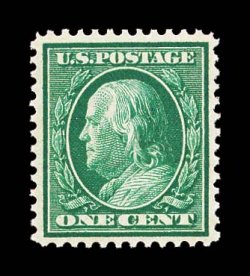 742 nh 357 image#357, 1c Green on bluish paper, well centered and margined, o.g., n.h., extremely fine; photocopy of a 1990 PF certificate for a block of four, this being the bottom right stamp. (Image) $190.00