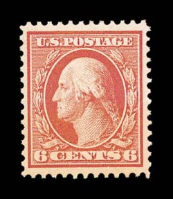 748 og 362 image#362, 6c Red orange on bluish paper, a gorgeous mint single in a quality which is rarely encountered, being incredibly well centered within uncharacteristically large margins, additionally it possesses a marvelous overall freshness which few others can boast, radiant color completely unaffected by oxidization, especially clean o.g. which has been very lightly hinged, extremely fine; actually a very rare stamp in this gem condition; 1995 PF certificate. (Image) $1,500.00