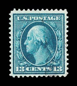 755 O 365 image#365, 13c Blue green on bluish paper, an incredibly choice used example, being one of the finest used Thirteen Cent Bluish Papers in existence, as this gem is impeccably well centered amid particularly large margins, plus its color is especially bright and fresh, additionally the cancel is very lightly and unobtrusively applied, extremely fine; a stamp for the finest collection of used stamps; 2003 PF certificate. (Image) $2,250.00