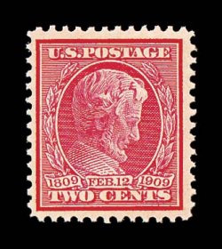 759 nh 369 image#369, 2c Lincoln on bluish paper, marvelously well centered amid extraordinarily large margins, deep luxuriant color, o.g., n.h., extremely fine; 2004 PSE certificate. (Image) $400.00