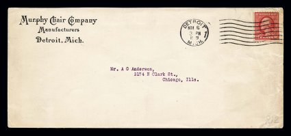 Detroit by "Detroit/Mich./Nov 6/1915" machine postmark, a very early usage