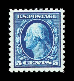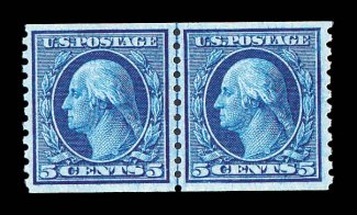 886 nh 458 image#458, 5c Blue rotary coil, perf. 10 vert., guide line pair, exceptional centering, rich color, o.g., n.h., extremely fine; 1994 APS certificate. (Image) $375.00