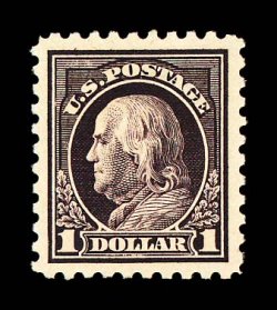 895 og 460 image#460, $1.00 Violet black, a most impressive jumbo-margined mint example, featuring huge wonderfully well balanced margins all around, deep luxuriant color and a crisp detailed impression, o.g., lightly hinged, an extremely fine large-margined gem; 1993 PF certificate. (Image) $850.00