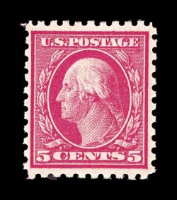 898 nh 467 image#467, 5c Carmine error, pristine mint single of this popular error, radiant color, well centered, o.g., n.h., very fine; 1980 PF certificate. (Image) $1,000.00