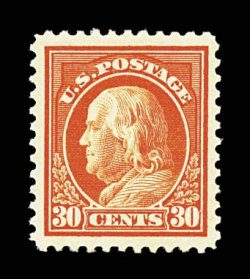 938 nh 516 image#516, 30c Orange red, extravagantly large and perfectly balanced margins all around, incredibly bright and fresh, pristine o.g., n.h., extremely fine gem; 1998 PF certificate. (Image) $80.00