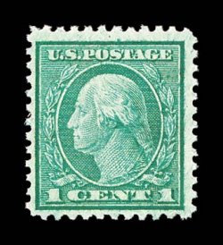 961 nh 545 image#545, 1c Green coil waste, perf. 11, well centered within uncharacteristically large margins, strong rich color and impression, o.g., n.h., choice very fine; 1990 PF certificate. (Image) $425.00
