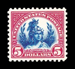 966 nh 550 image#550, 5c Pilgrim Tercentenary, a most remarkable jumbo-margined top sheet-margin plate no. 12427 single, boasting absolutely enormous margins and being flawlessly centered within them, sumptuously rich color, o.g., n.h., extremely fine; an extraordinary stamp for the collector seeking a true gem example; 1991 PF certificate. (Image) $85.00