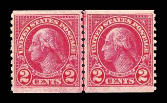 978 nh 599A image#599A, 2c Carmine coil, Ty. II, perf. 10 vert., pristine joint line pair, particularly well centered, rich luxuriant color, o.g., n.h., very fine and choice; 1988 PF certificate; ex-Weisman. (Image) $1,300.00