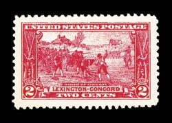 981 nh 618 image#618, 2c Lexington-Concord, an incredible jumbo example of this popular commemorative, possessing the most gargantuan margins that we have ever encountered, and most amazingly being perfectly centered within these mammoth borders, brilliant fresh color on bright paper, o.g., n.h., simply superb; 2004 PSE certificate. (Image) $8.00