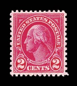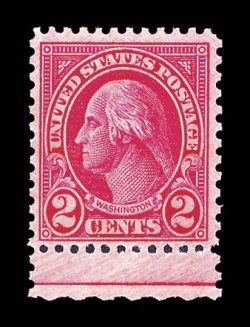 985 nh 634A image#634A, 2c Carmine, Ty. II, an incredibly choice and appealing mint bottom sheet-margin single, marvelously well centered and margined, gorgeous radiant color, pristine o.g., n.h., extremely fine; photocopy of a 2002 PSE certificate for a block of four, this being the bottom right stamp. (Image) $600.00