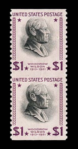 998 nh 832d image#832d, $1.00 Red violet and black, vertical pair, imperforate horizontally, a nice example of this elusive error, trivial internal wrinkle, o.g., n.h., nearly very fine for this and actually offered less frequently than its first printing counterpart. (Image) $1,500.00