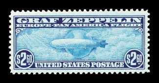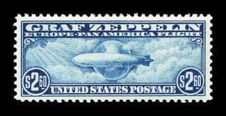 1036 nh C15 image#C15, $2.60 Graf Zeppelin, excellent centering within large balanced margins, fresh color, o.g., n.h., an extremely fine gem; 2002 PF certificate. (Image) $1,050.00