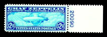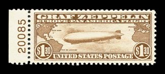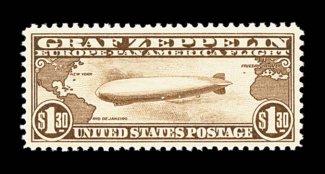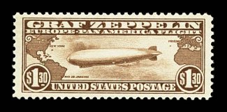 1034 nh C14 image#C14, $1.30 Graf Zeppelin, exceedingly well centered within large balanced margins, rich color, o.g., n.h., extremely fine and choice. (Image) $700.00