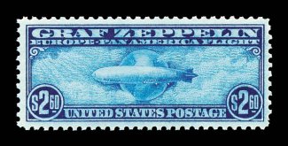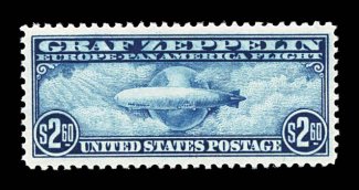 1035 nh C15 image#C15, $2.60 Graf Zeppelin, a highly desirable mint single that is not only extraordinarily well centered within large margins, but it is also remarkably fresh, with intensely rich color and impression on immaculate white paper, o.g., n.h., extremely fine. (Image) $1,050.00