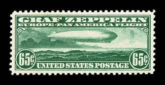 1031 og C13 image#C13, 65c Graf Zeppelin, exceptionally well centered within large margins, strong rich color, o.g., barest trace of hinging (if any), extremely fine. (Image) $240.00